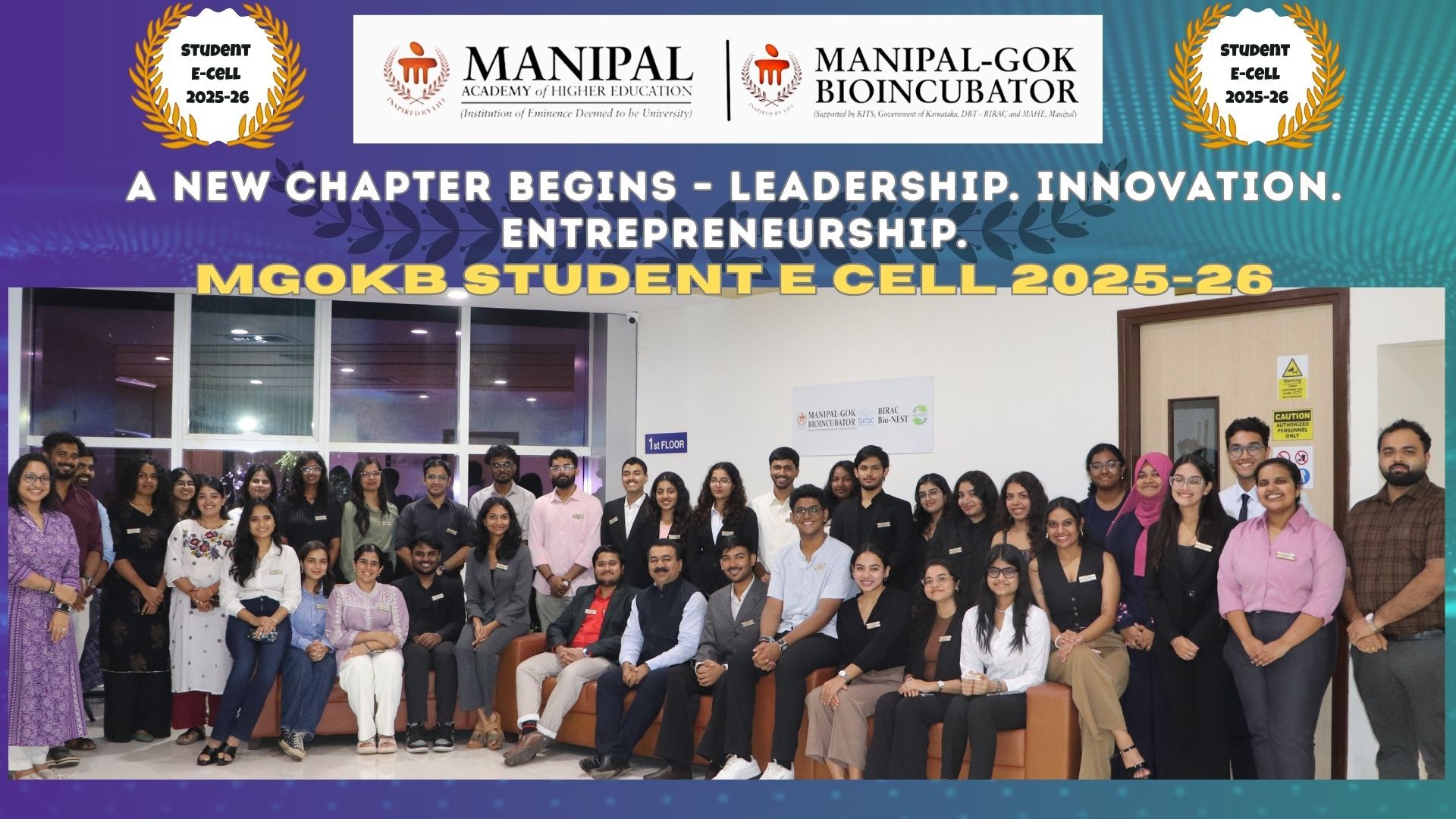 Installation Ceremony - Manipal-GoK Bioincubator Student Entrepreneurship Cell (SEC) 2025–26 We are delighted to share the successful Installation Ceremony of the Student E-Cell (SEC) 2025–26 at the Manipal-GoK Bioincubator(MGOKB)- BioNest, a proud moment that reflects our continued commitment to nurturing the spirit of entrepreneurship among students. This ceremony was not just an event, but a celebration of vision, leadership, and the power of young minds to create meaningful impact. The Student E-Cell forms the backbone of our student-driven initiatives—acting as a bridge between academia, startups, industry leaders, and the entrepreneurial ecosystem. What this means for 2025–26: The newly appointed team takes on the responsibility of leading with passion and purpose. They will: Inspire and support innovative, student-led startup ideas right from ideation to execution. Foster collaborations with industry, academia, and entrepreneurial networks to open doors for new opportunities. Cultivate an ecosystem that encourages creativity, problem-solving, and hands-on learning. Organize impactful programs and events—from workshops, networking forums, and startup showcases to mentorship-driven activities that bring aspiring entrepreneurs closer to real-world experiences. With fresh energy and enthusiasm, the MGOKB Student E-Cell is all set to empower the next generation of innovators and changemakers. This marks the start of a year full of ideas, collaborations, challenges, and milestones that will not only shape students’ entrepreneurial journeys but also strengthen the vision of MGOKB in contributing to India’s innovation-driven future.