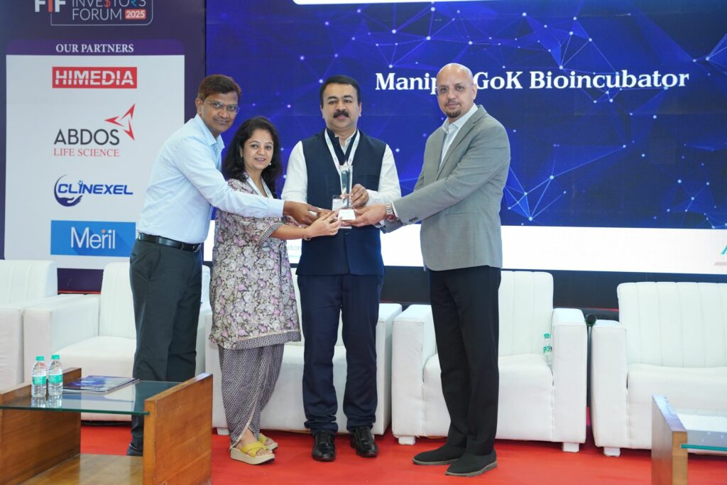 Manipal-GoK Bioincubator – BioNest was honored with the “Bioincubator of the Year (Tier 2)” Award at the BioStartUps Founders & Investors Forum 2025, held at the CIDCO Convention Center, Navi Mumbai. This esteemed recognition reflected our commitment to innovation and the impact we have created in nurturing biotech startups across the ecosystem. It was a proud and humbling moment to receive this award from Dr. Manish Diwan, Head – Biofoundry, NCR Biotech Cluster & IVCOL, BIRAC, during the awards ceremony.